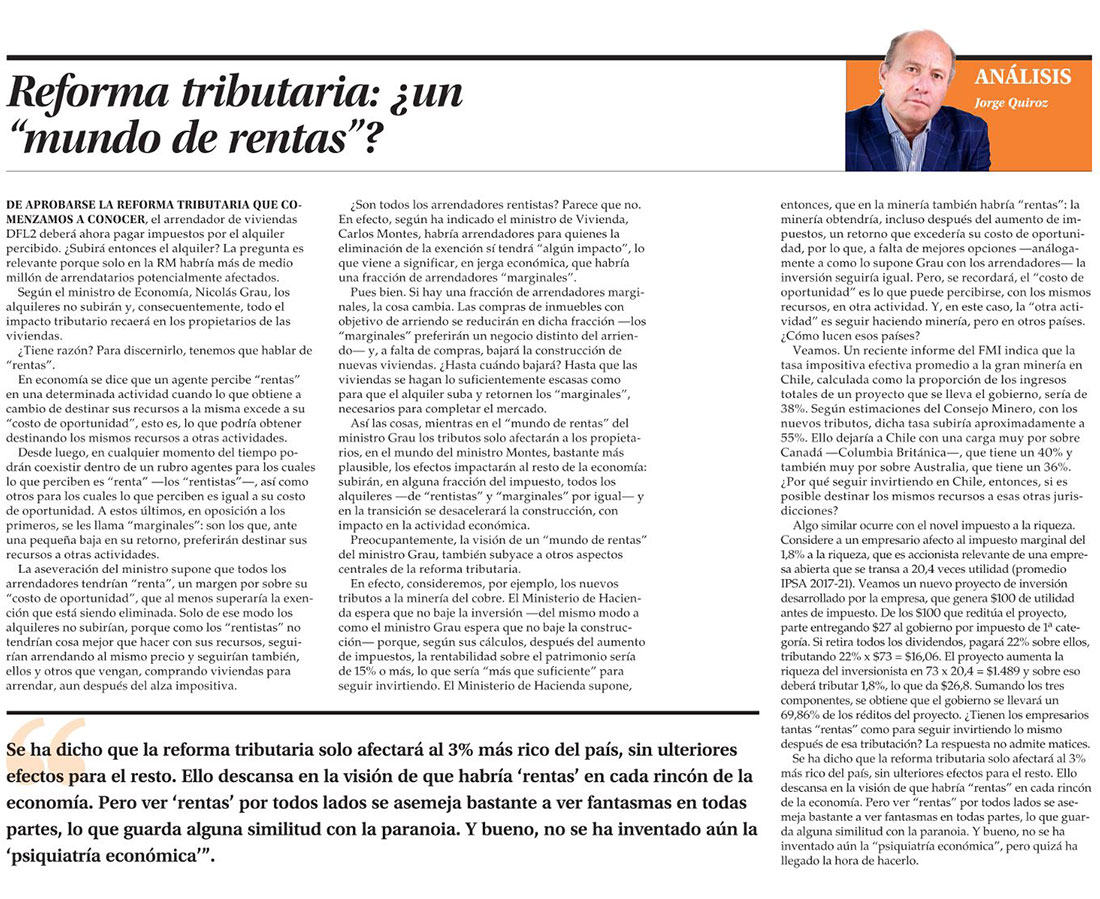 ¿Permite la reforma tributaria alcanzar los objetivos que se ha propuesto el gobierno? - (La Tercera)