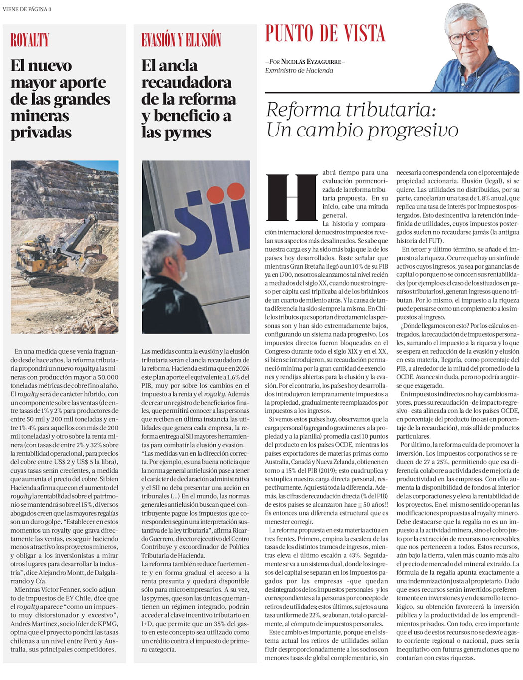 "La reforma tributaria no está ligada en ninguno de sus componentes al resultado del plebiscito" - (Medios Regionales Cadena El Mercurio)