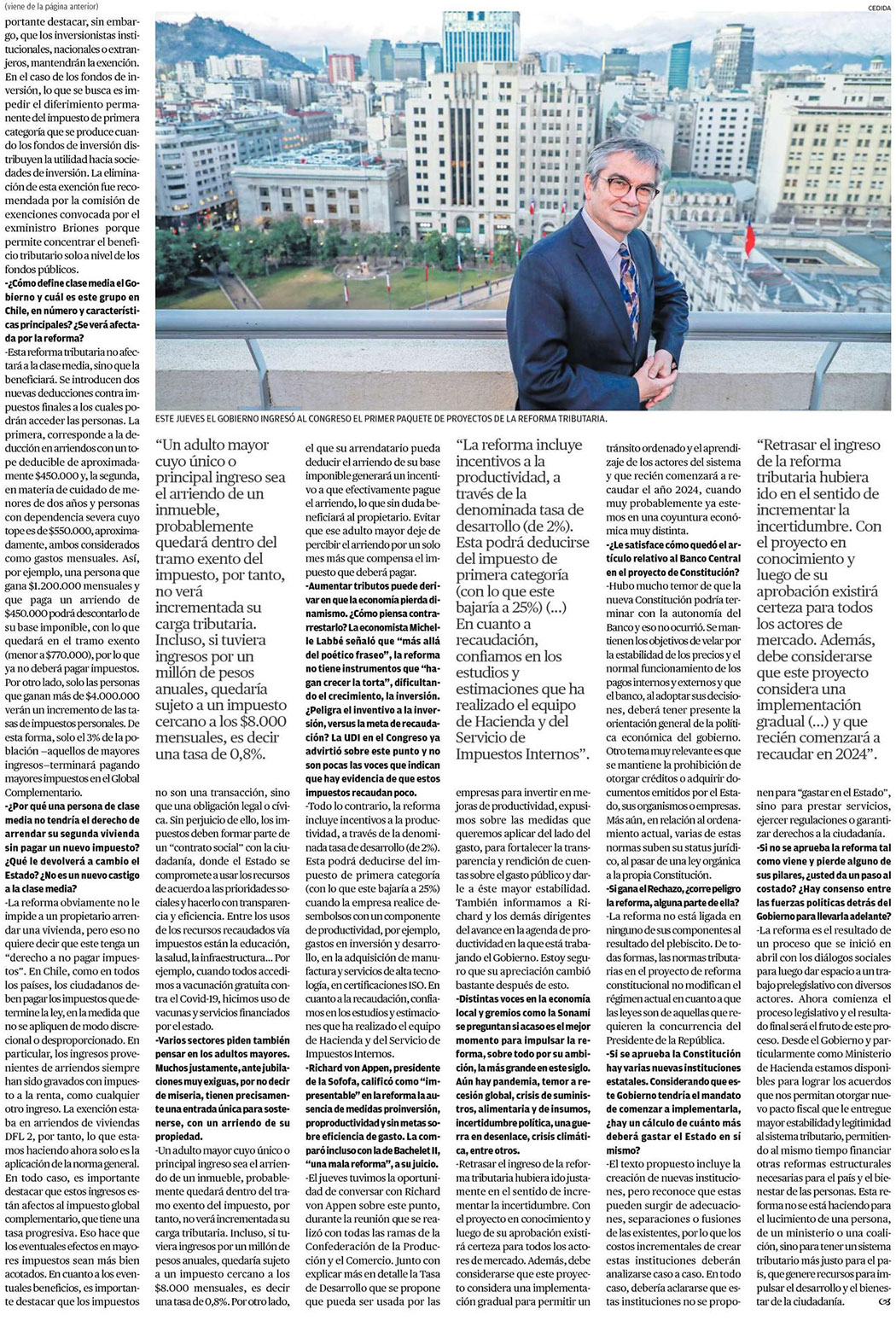 Plan de trabajo de la reforma tributaria considera sumar a tramitación una quinta iniciativa - (El Mercurio de Santiago)