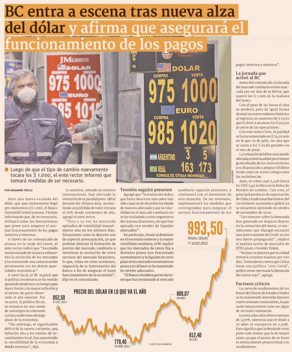 Banco Central realiza intervención verbal ante alza del dólar: indica que volatilidad de últimos días es de "especial preocupación" y resalta los "niveles de incertidumbre local" - (Pulso)