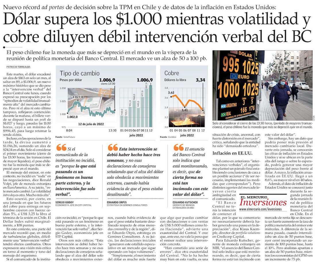 Dólar cerró por primera vez sobre los $1.000 ante caída del cobre y pese a mensaje del Banco Central - (Pulso)