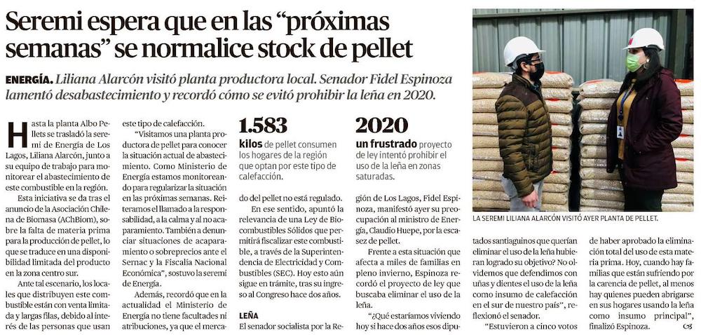 Espinoza recalca a Huepe la falta de pellet en el sur - (La Estrella de Chiloé)