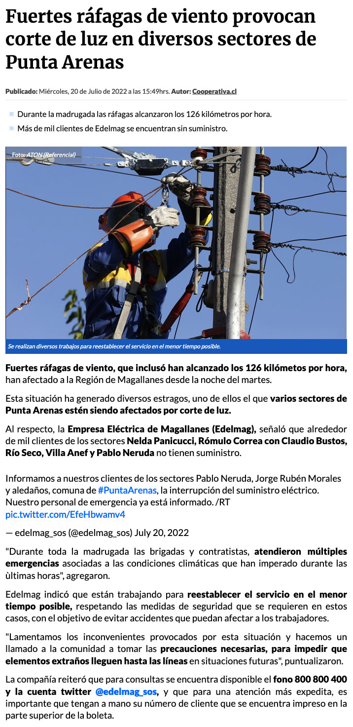 Vientos de hasta 120 kilómetros en la ciudad causaron estragos en Punta Arenas - (El Pingüino)