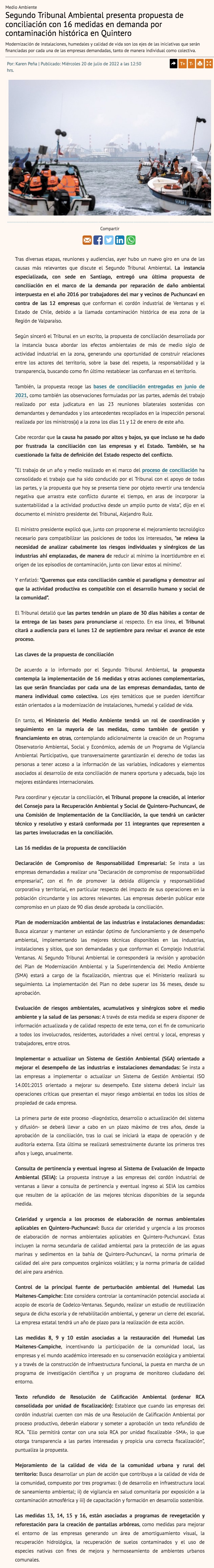 Tribunal da propuesta de conciliación ante demanda ambiental - (El Mercurio de Valparaíso)