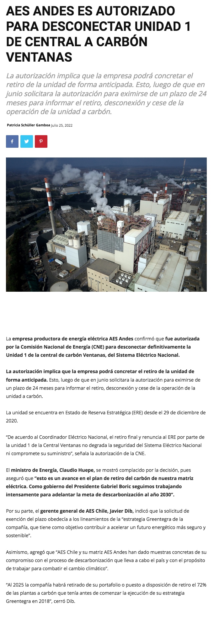 AES Andes logra autorización para cese y desconexión anticipada de Unidad 1 de Ventanas - (mvcomunicaciones.cl)