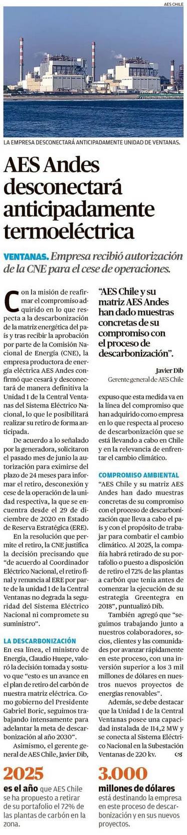 AES Andes logra autorización para cese y desconexión anticipada de Unidad 1 de Ventanas - (mvcomunicaciones.cl)
