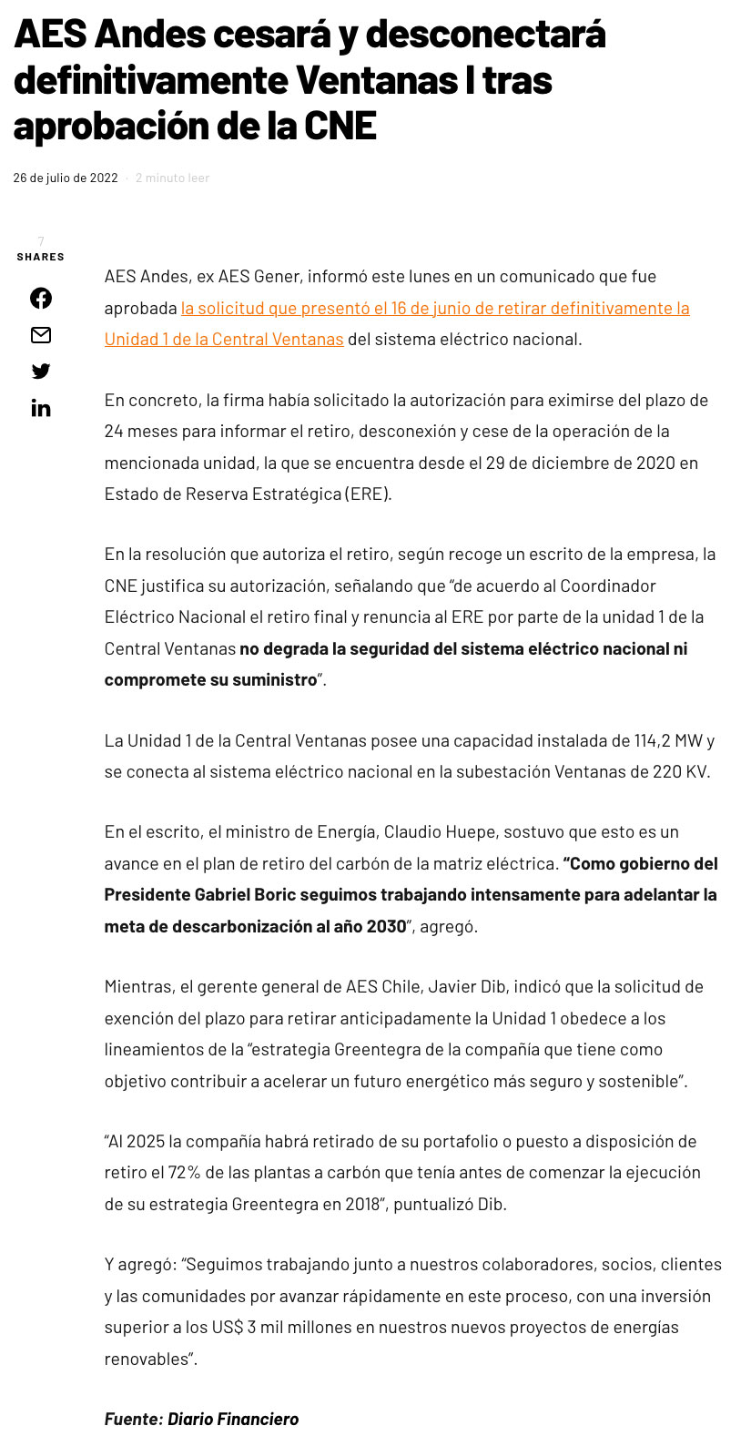 AES Andes logra autorización para cese y desconexión anticipada de Unidad 1 de Ventanas - (portalVallenarDigital.cl)