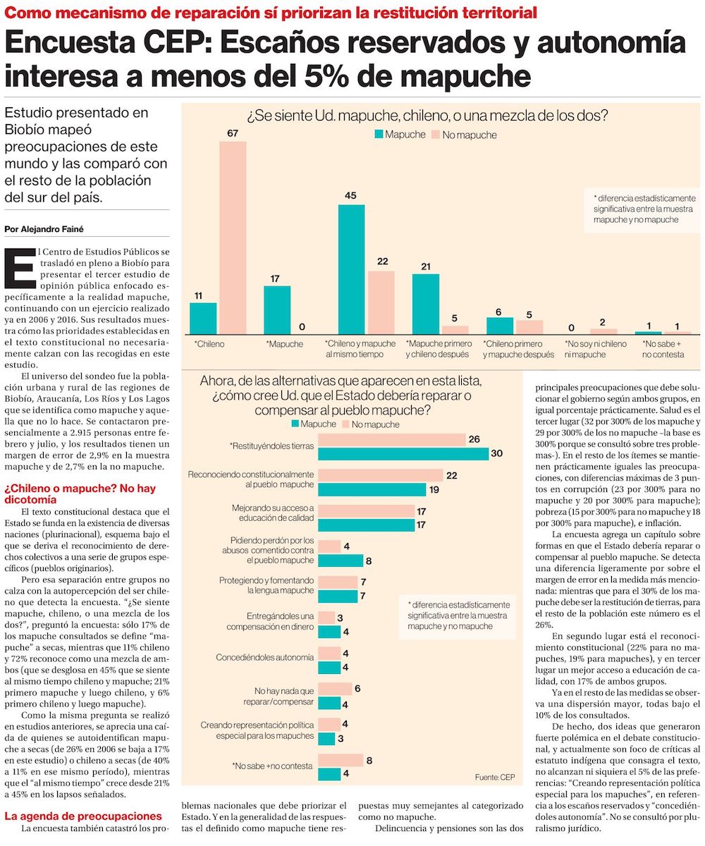 Encuesta CEP: más población se siente chilena y mapuche y pierde fuerza el estado plurinacional - (Diario Financiero)