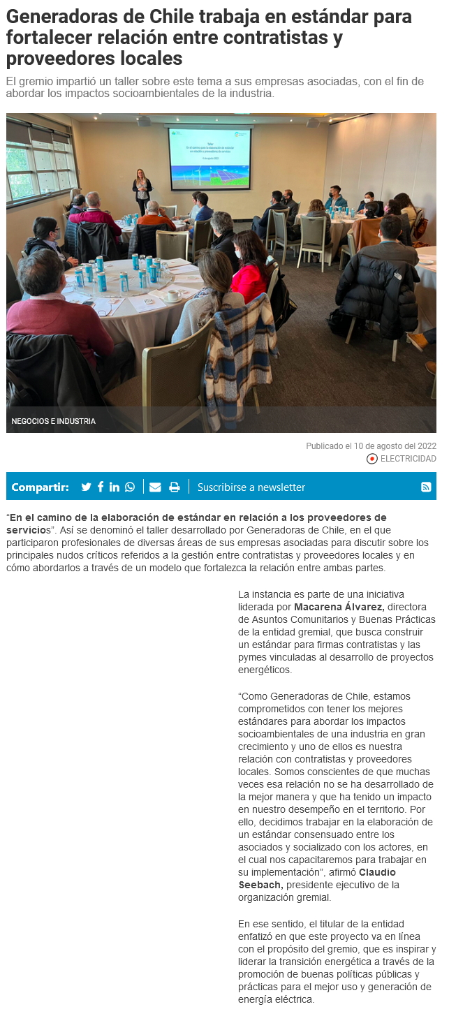Generadoras de Chile alista estándar para fortalecer la relación entre contratistas y proveedores - (portalminero)