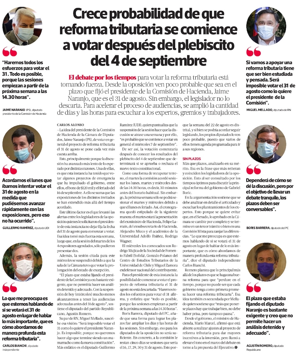 Reforma tributaria: Hacienda convoca a mesa con parlamentarios con miras a presentar indicaciones - (Diario Financiero)