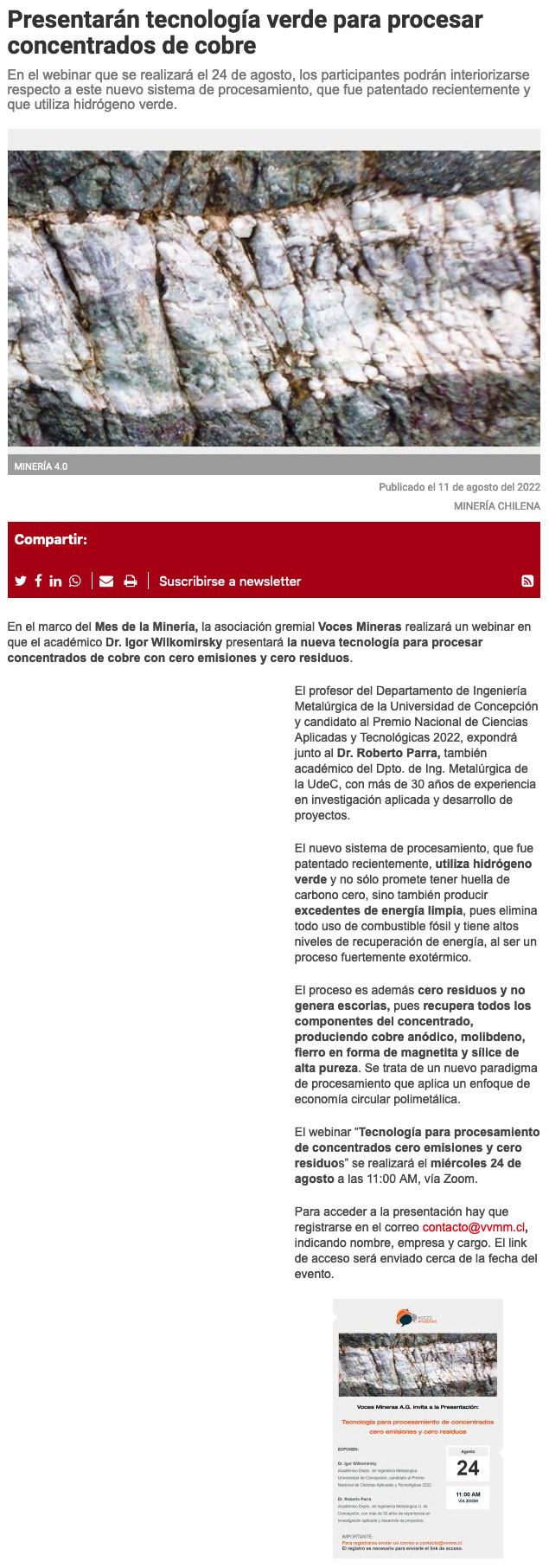 Presentarán tecnología verde para procesar concentrados de cobre - (redimin)