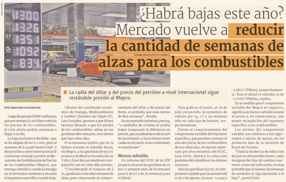 Bencinas podrían bajar antes de Fiestas Patrias si se ajusta el Mepco - (El Mercurio de Santiago)