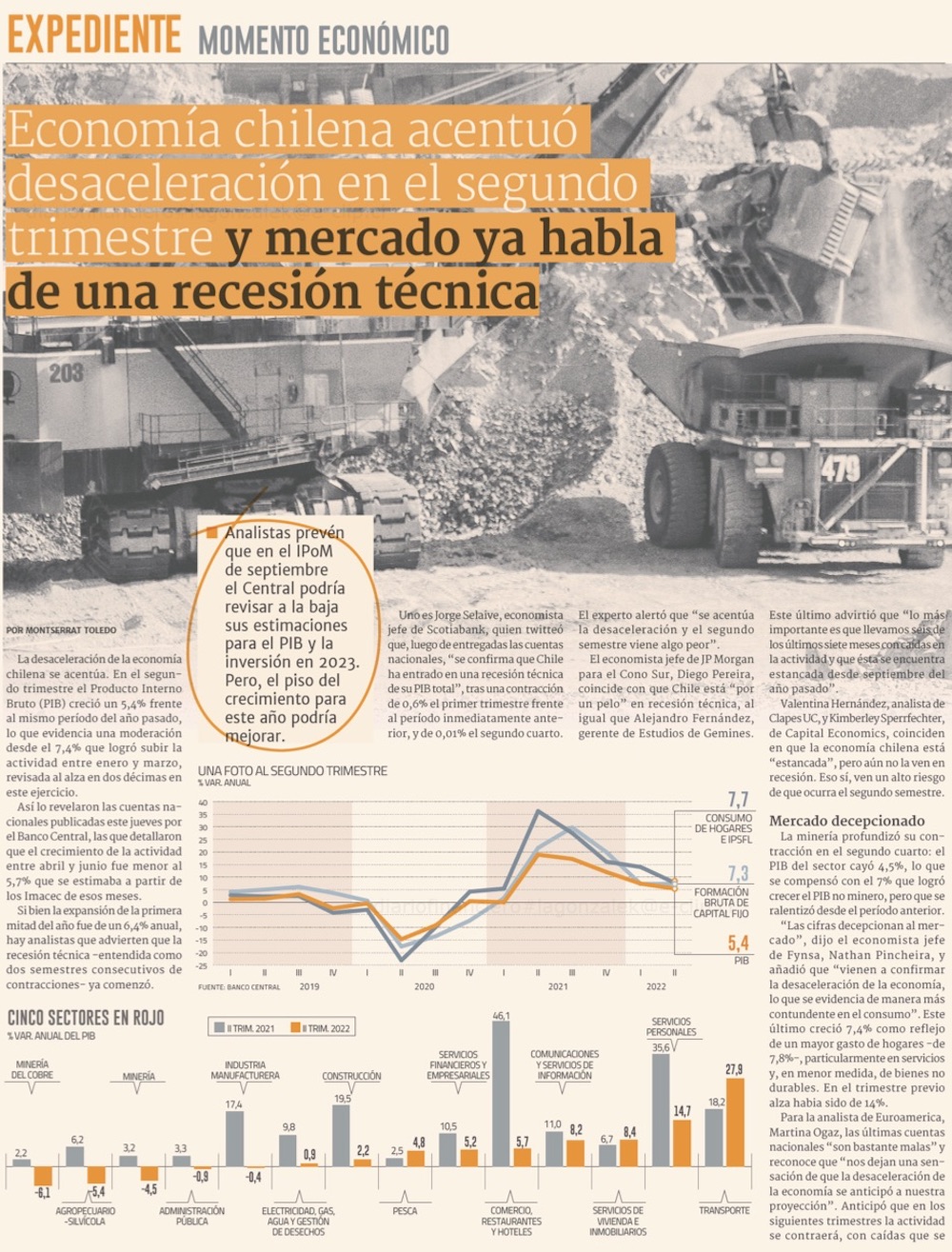 Economía se estanca en 2° trimestre y analistas apuntan a que está entrando en fase recesiva - (El Mercurio de Santiago)