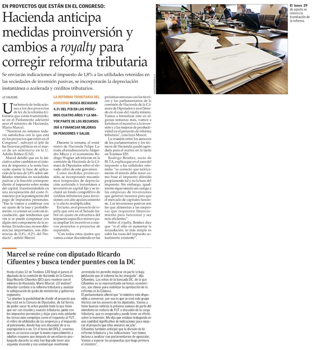 Marcel adelanta indicaciones a reforma tributaria: royalty, fondo de créditos impositivos y nueva base del impuesto a utilidades retenidas - (DF Online)