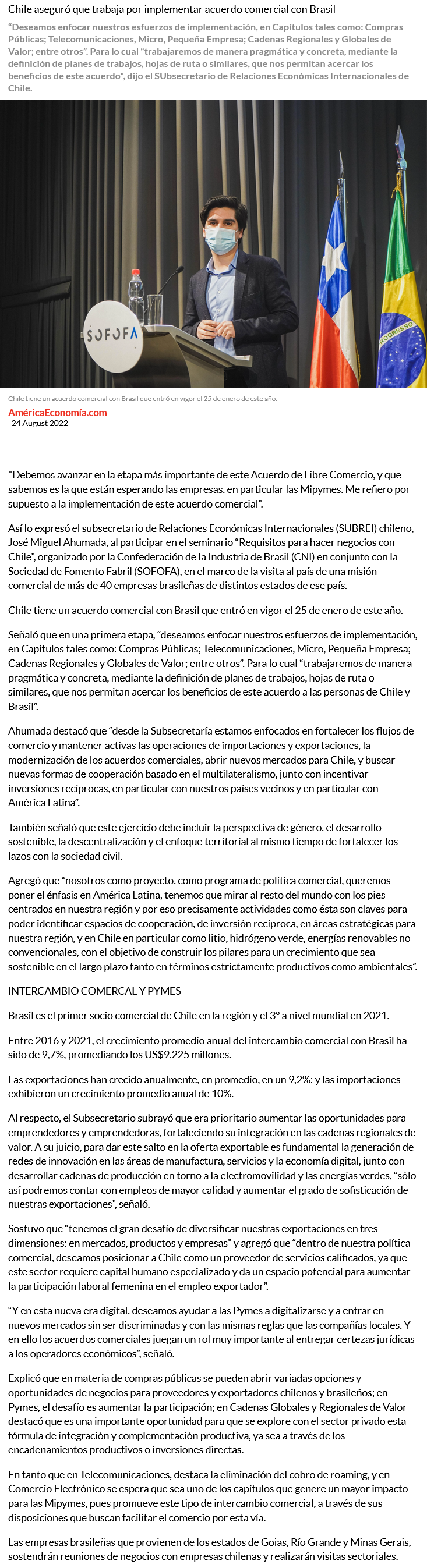 Subsecretario Ahumada:“Estamos trabajando para avanzar en la implementación del acuerdo comercial con Brasil” - (poderyliderazgo)