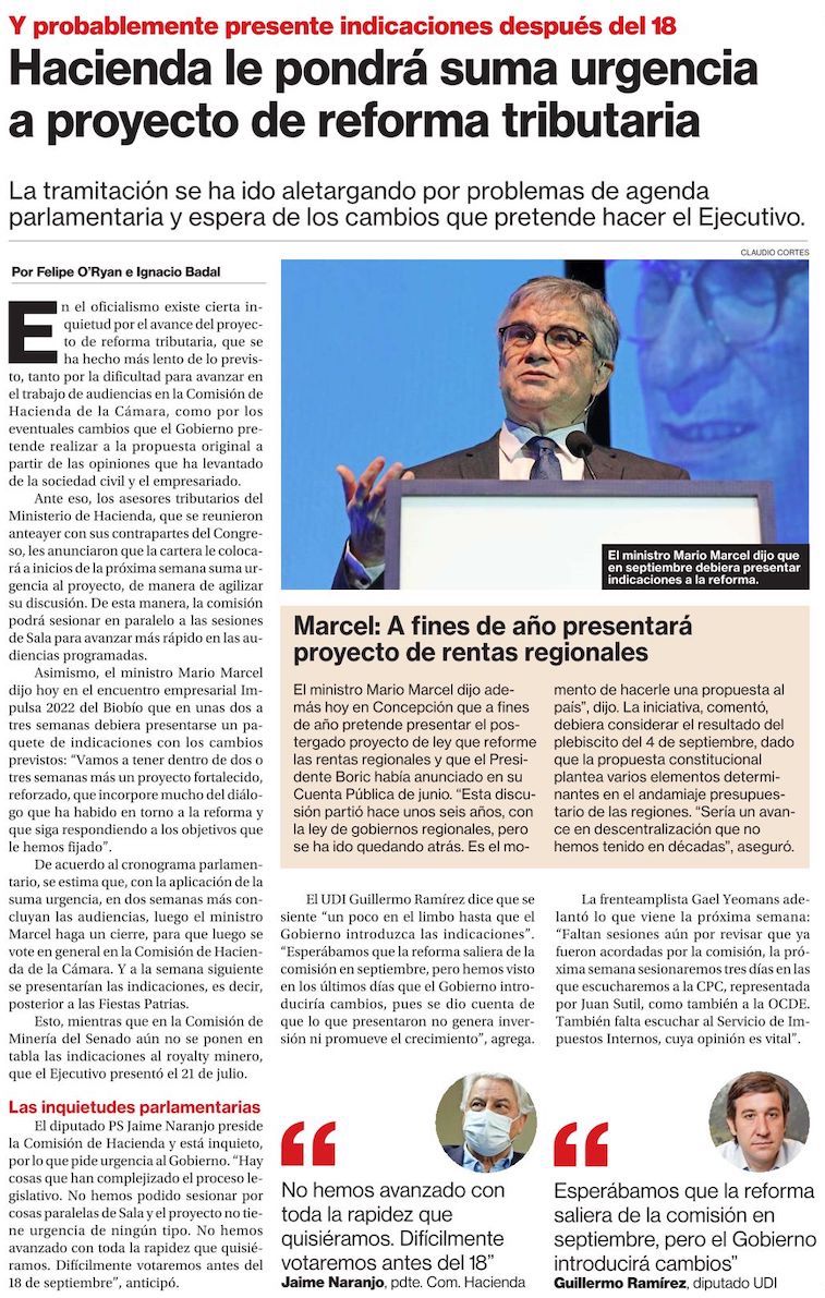 Reforma tributaria: Ministro Marcel anuncia que espera ingresar las indicaciones de "un proyecto fortalecido" en un plazo de dos o tres semanas - (El Mostrador)