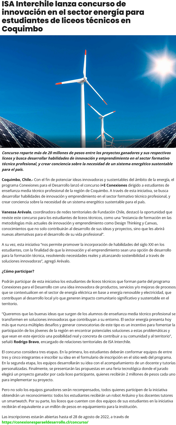 Abren convocatoria para ideas innovadoras en el sector energía dirigido a estudiantes secundarios de Coquimbo - (revistaei.cl)