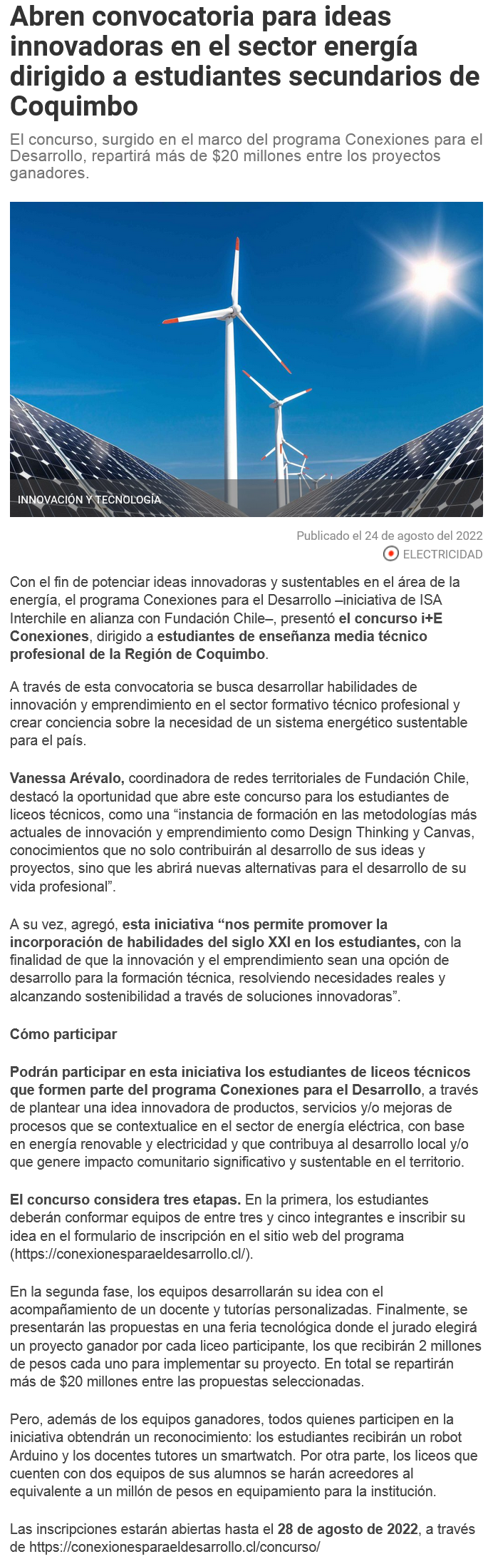 ISA Interchile lanza concurso de innovación en el sector energía para estudiantes de liceos técnicos en Coquimbo - (revistaenergia.cl)