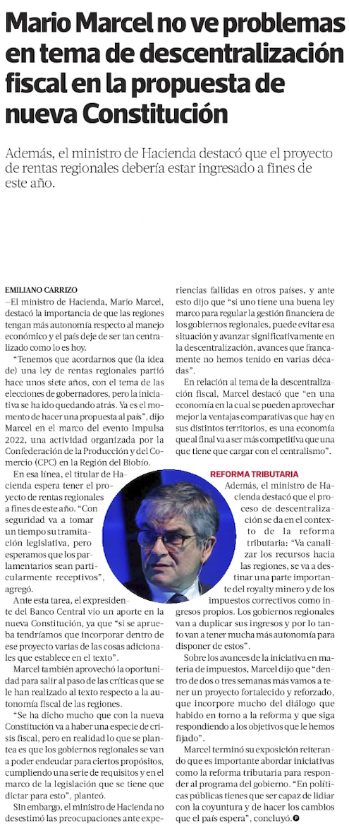 Ministro Marcel no ve problemas en descentralización - (El Mercurio de Santiago)