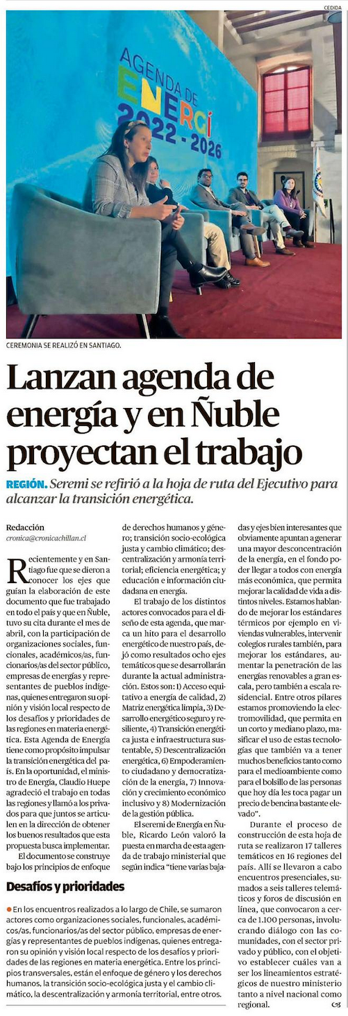 Agenda de Energía 2022-2026: Gobierno de Boric lanzó su ruta hacia "una transición socio-ecológica justa" - (cooperativa online)