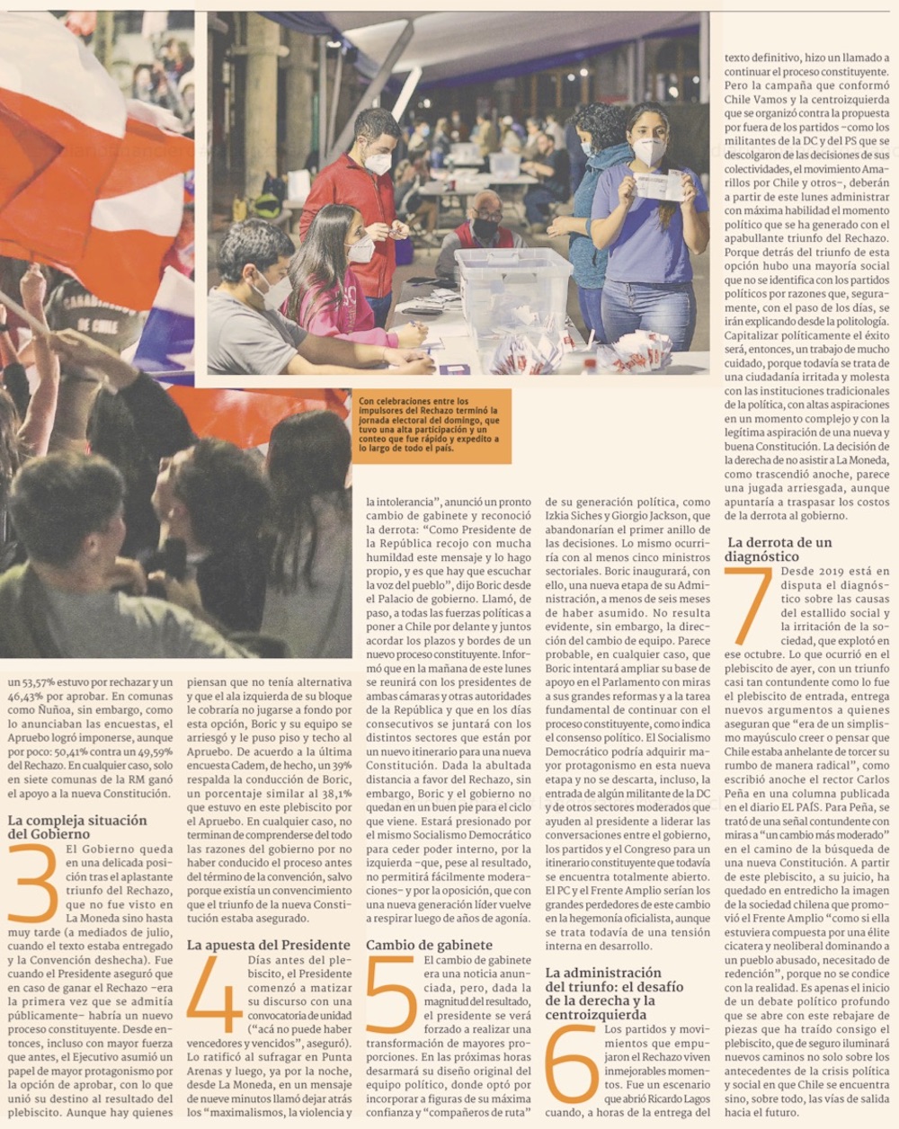 Boric asume derrota, convoca a diálogos y anuncia pronto cambio de gabinete - (Diario Financiero)
