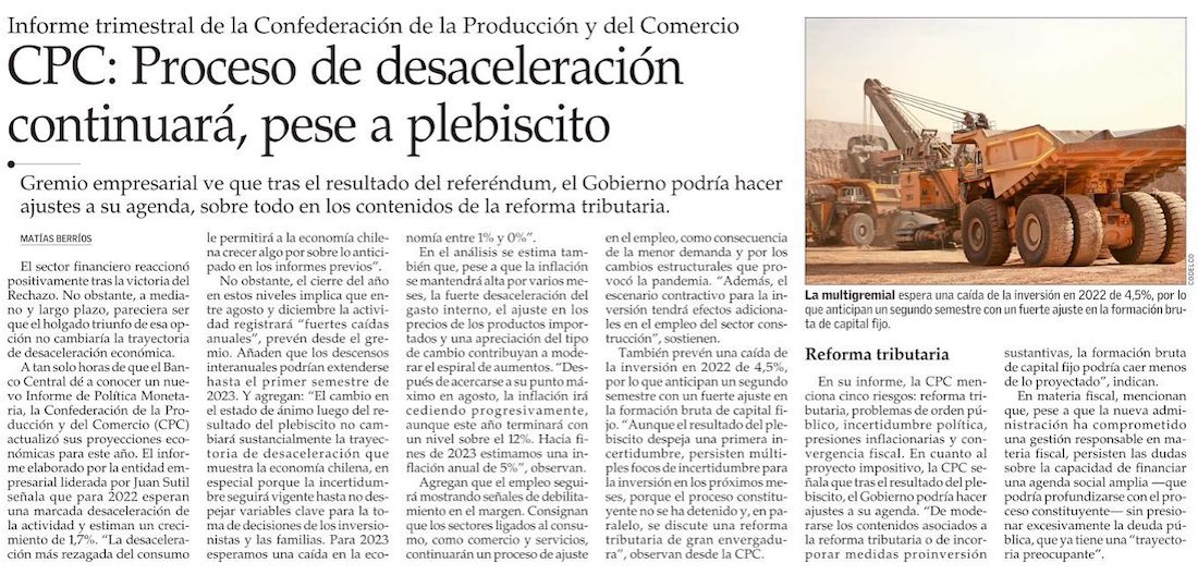 Gobierno se hace eco de propuestas empresariales sobre inversión y productividad - (Diario Financiero)