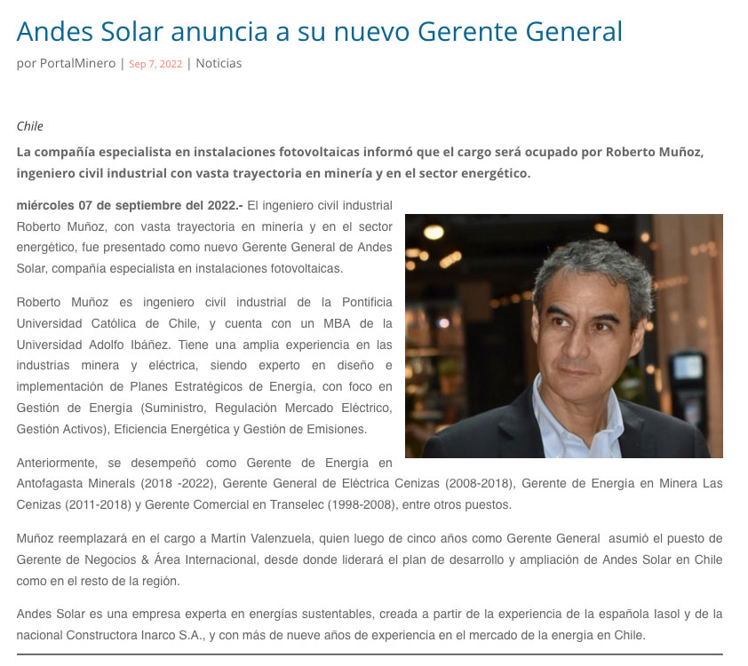 Andes Solar nombra a su nuevo gerente general - (revistaei.cl)