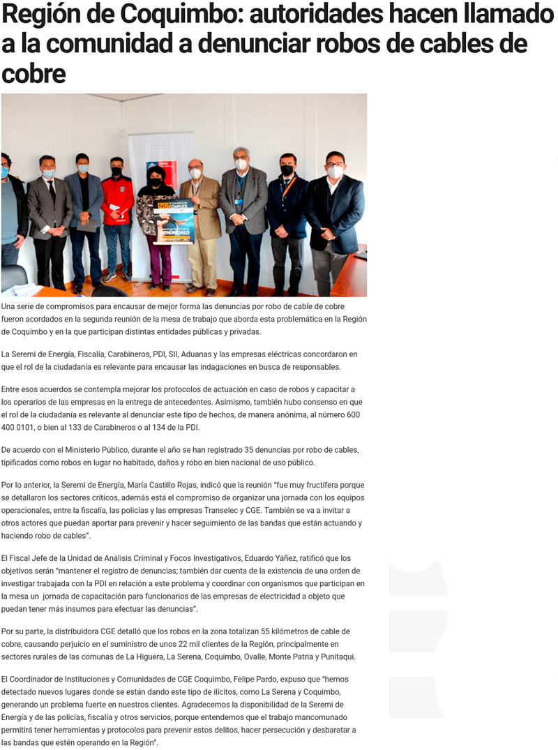 Llaman a la comunidad a denunciar el robo de cables eléctricos - (La Región)