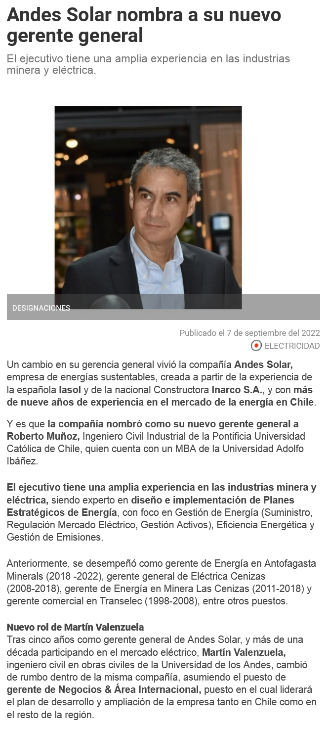 Andes Solar anuncia a su nuevo Gerente General - (portalminero)