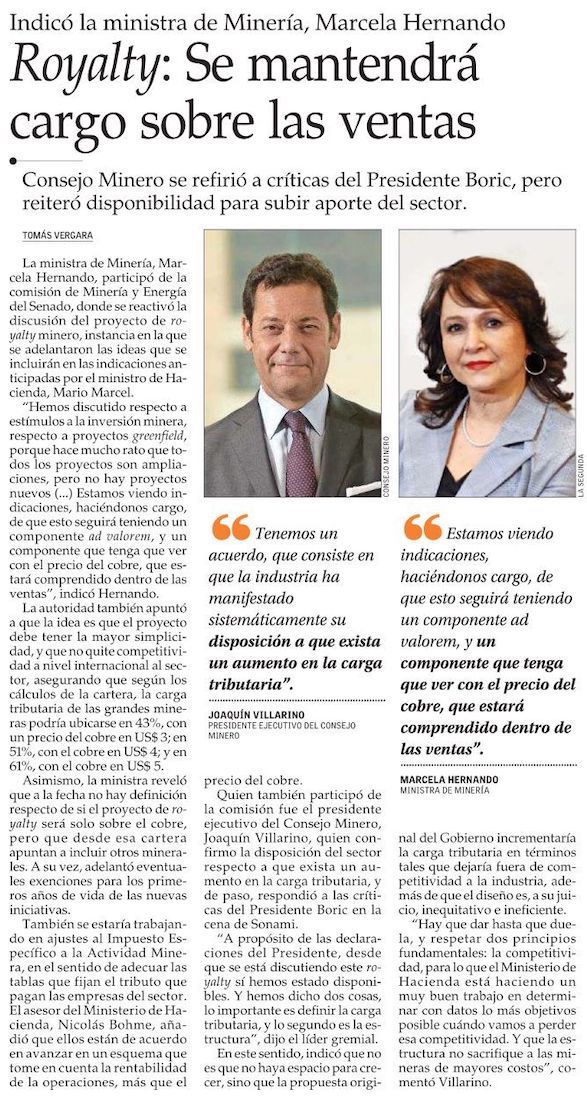 Gobierno asegura que el royalty incorporará estímulos para nuevas inversiones mineras - (Diario Financiero)