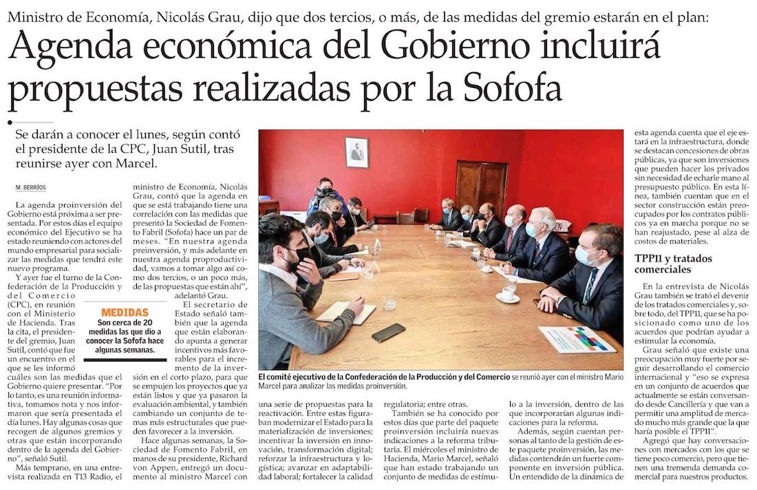 Empresarios piden más diálogo sobre agenda pro inversión y Von Appen claridad sobre tratados comerciales - (Diario Financiero)