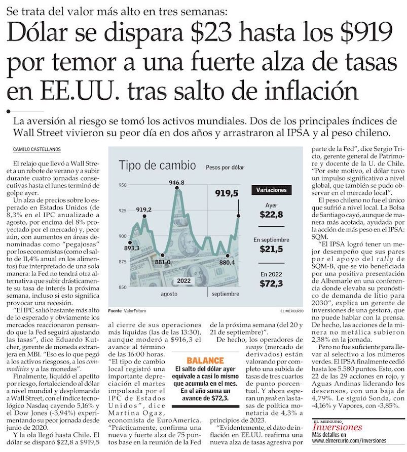 Inflación no para en EE.UU. y en Chile ven el dólar en $950 a fin de año - (La Segunda)