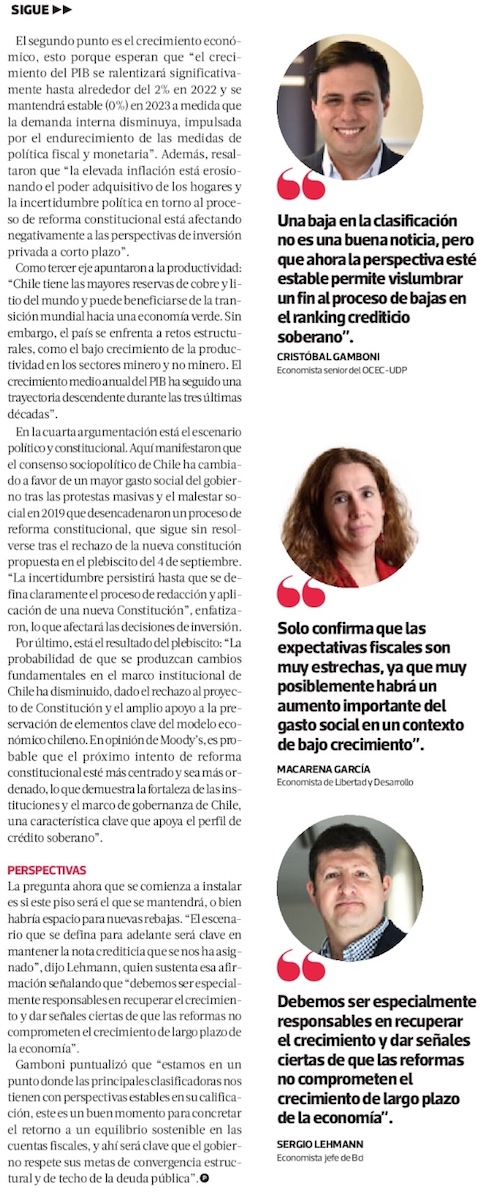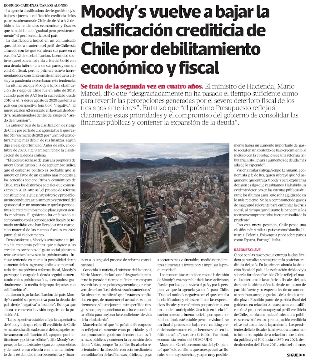 Ante debilitado escenario económico y político, Chile sufre sexta rebaja de calificación de riesgo en seis años - (El Mercurio de Santiago)