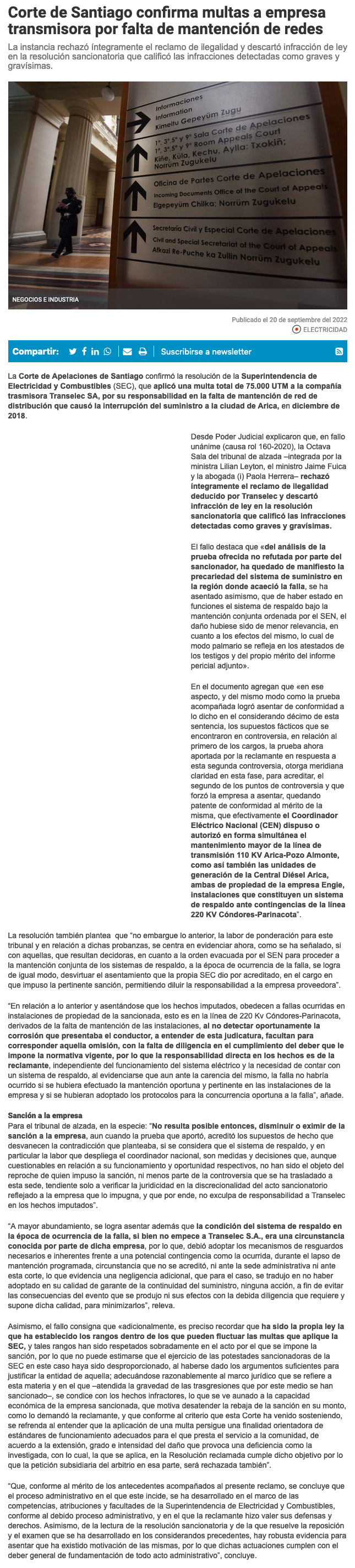 Corte de Santiago confirma multas a empresa transmisora de electricidad - (diarioconstitucional.cl)