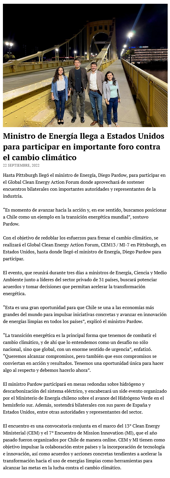 Ministro de Energía llega a Estados Unidos para participar en importante foro contra el cambio climático - (diarioelnortino)