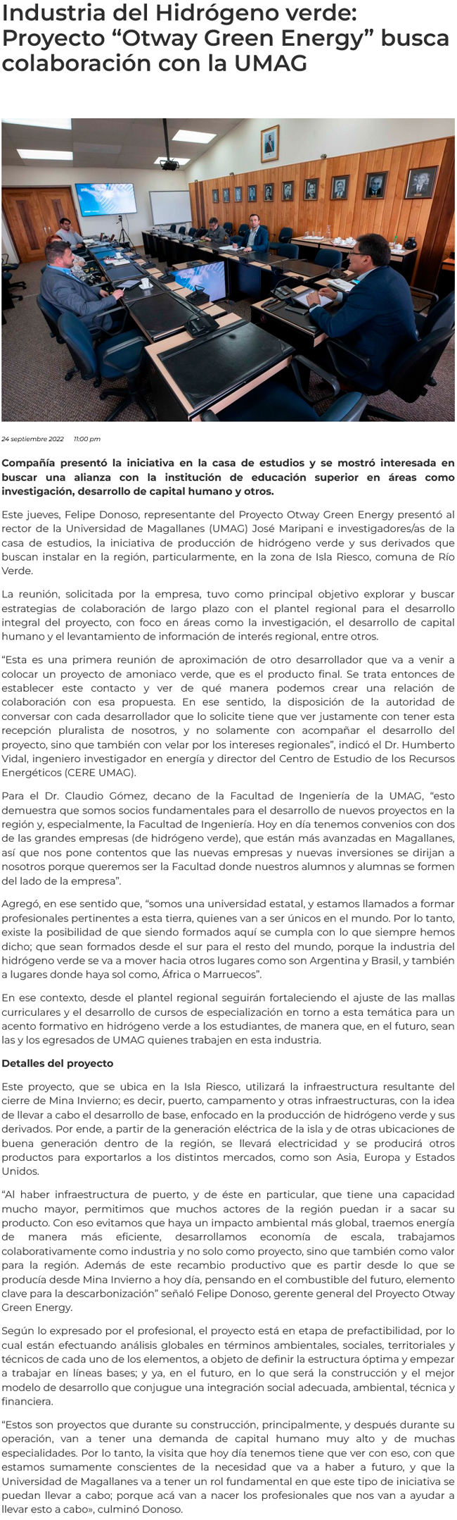 Proyecto de hidrógeno verde busca asociatividad con la Umag - (La Prensa Austral)