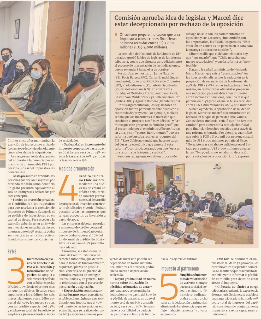 R. tributaria: Gobierno consigue aprobación en general, pero con duras críticas de oposición - (El Mercurio de Santiago)
