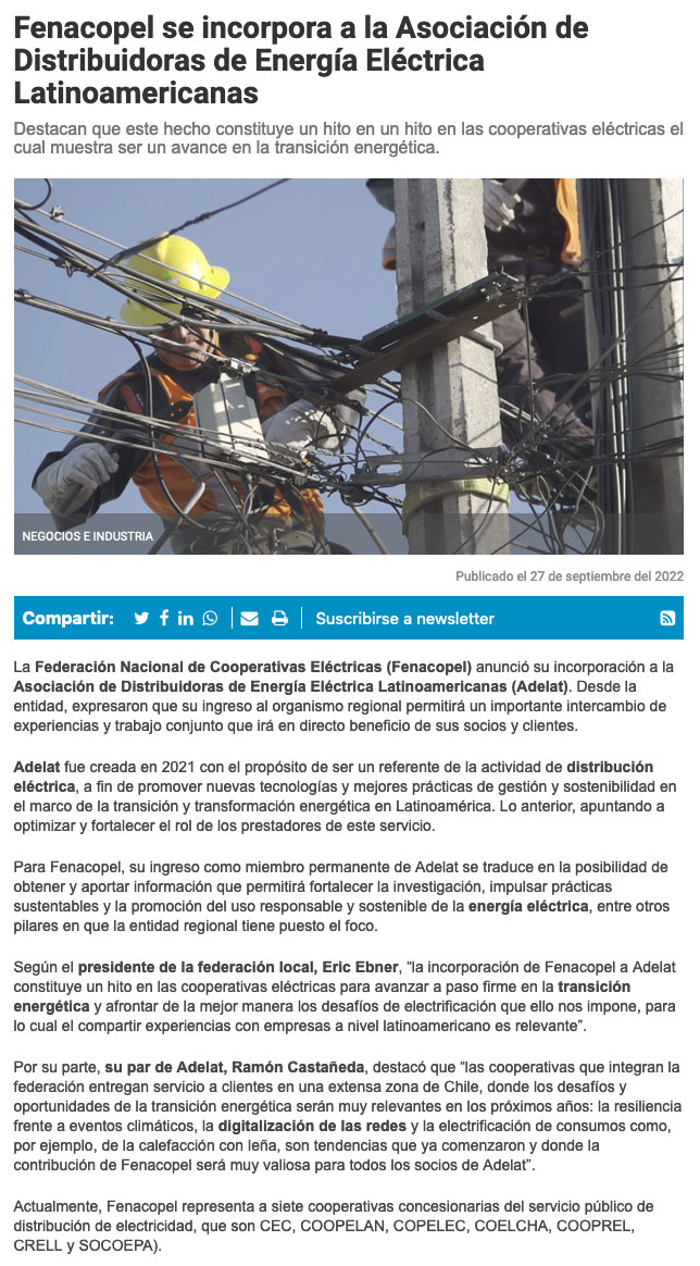 Los Ángeles, fue sede “IV Seminario del Sector Cooperativo Eléctrico 2022” que reunió a las Cooperativas eléctricas del país, asociadas a FENACOPEL - (La Tribuna)