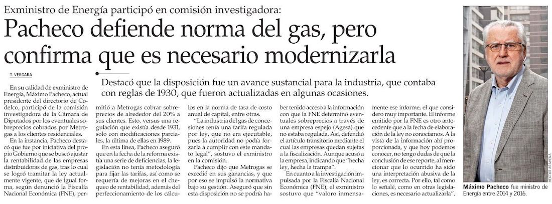 Exministro Máximo Pacheco aborda en el Congreso polémica por sobreprecios de Metrogas - (Diario Financiero)