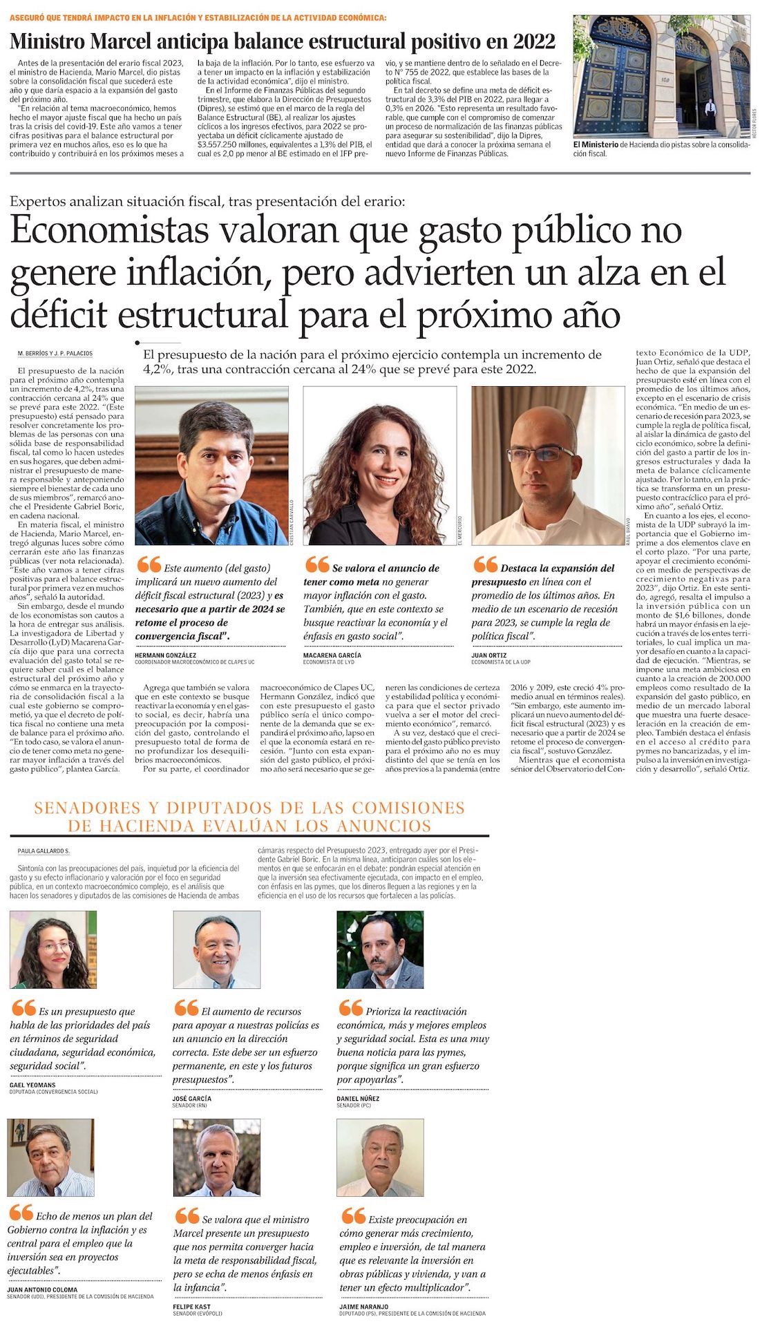 Presupuesto 2023: gasto fiscal crecerá un 4,2% y Presidente Boric promete crear 200 mil empleos con más inversión pública - (Diario Financiero)