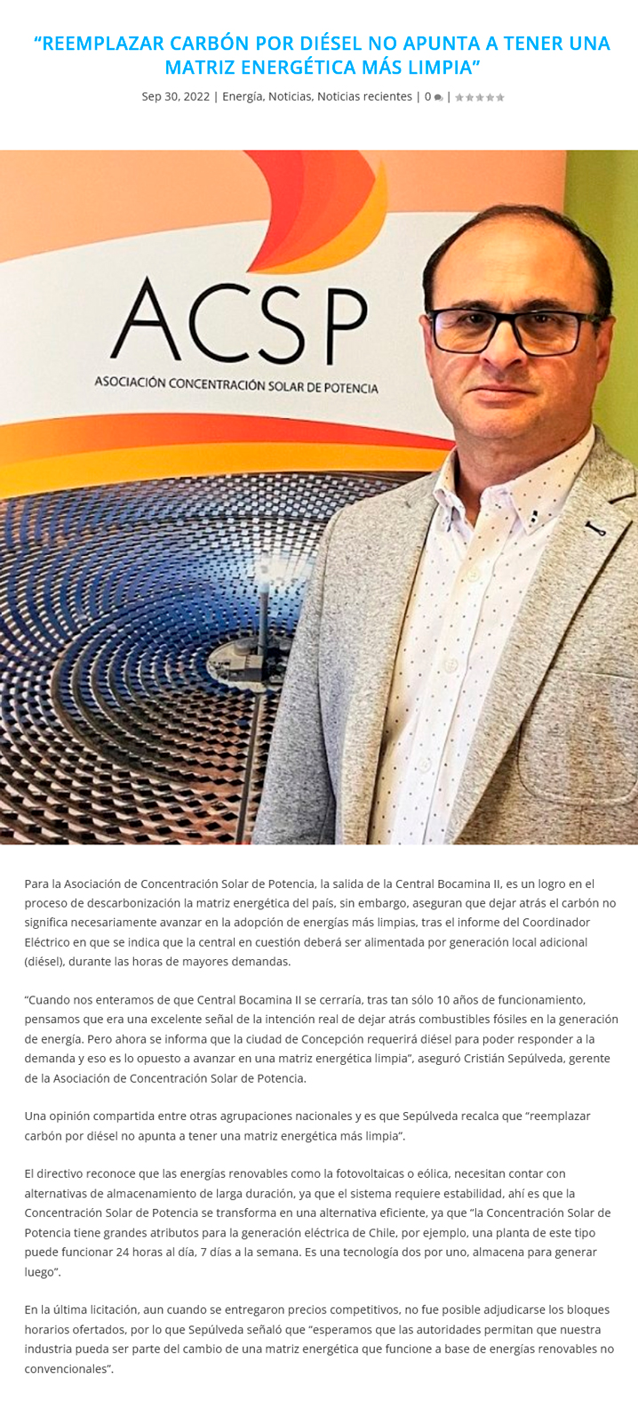 ACSP: “Reemplazar carbón por diésel no apunta a tener una matriz energética más limpia” - (revistaei.cl)