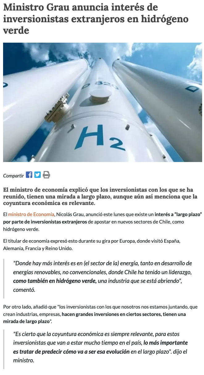 Ministro Grau destaca el interés de inversionistas extranjeros en Chile a largo plazo - (cooperativa online)