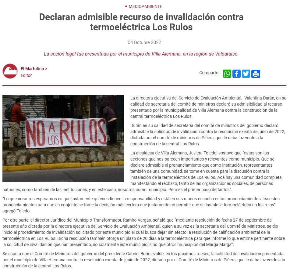 SEA declara admisible recurso de invalidación de termoeléctrica Los Rulos presentado por el municipio de Villa Alemana - (elciudadano)