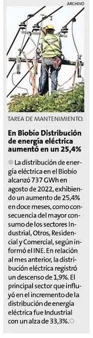 Distribución de energía eléctrica de Biobío aumentó 25,4% en agosto - (La Tribuna)