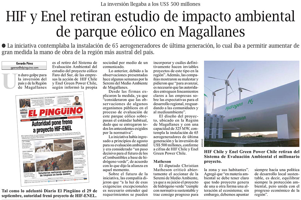 HIF y Enel Green Power retiran estudio de impacto ambiental de proyecto eólico en Punta Arenas - (cooperativa.cl)