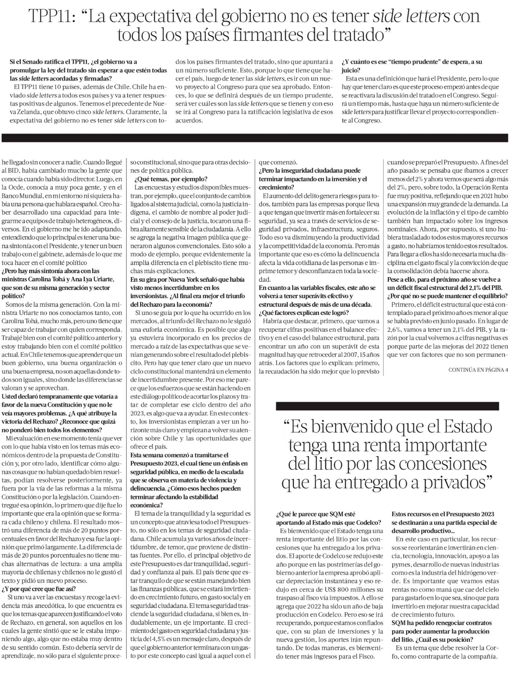 Ana Lya Uriarte: “No visualizo las razones por las que debiéramos de claudicar en las reformas” - (El Mercurio de Santiago)