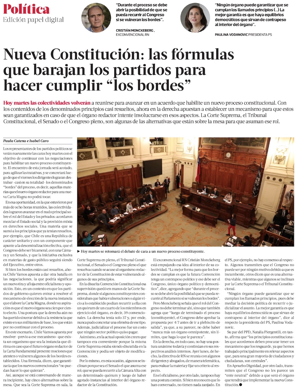 Ana Lya Uriarte: “No visualizo las razones por las que debiéramos de claudicar en las reformas” - (El Mercurio de Santiago)