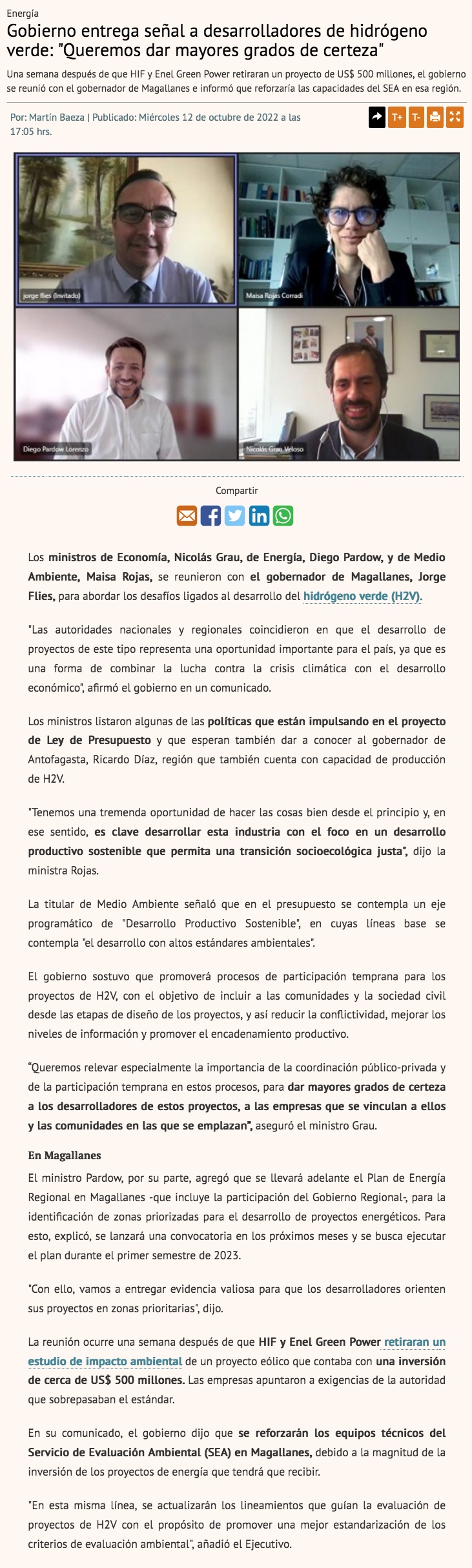 Gobierno destaca la necesidad del desarrollo de hidrógeno verde en Magallanes y busca entregar mayores grados de certeza a la industria - (Pulso Online)