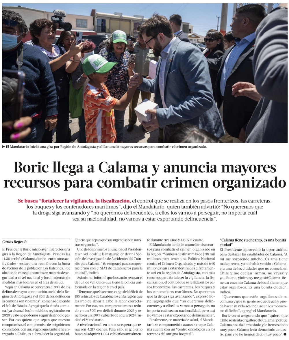 Boric refuerza discurso en seguridad e invoca artículo para expulsar a extranjeros que agredieron a carabineros - (El Mercurio de Santiago)