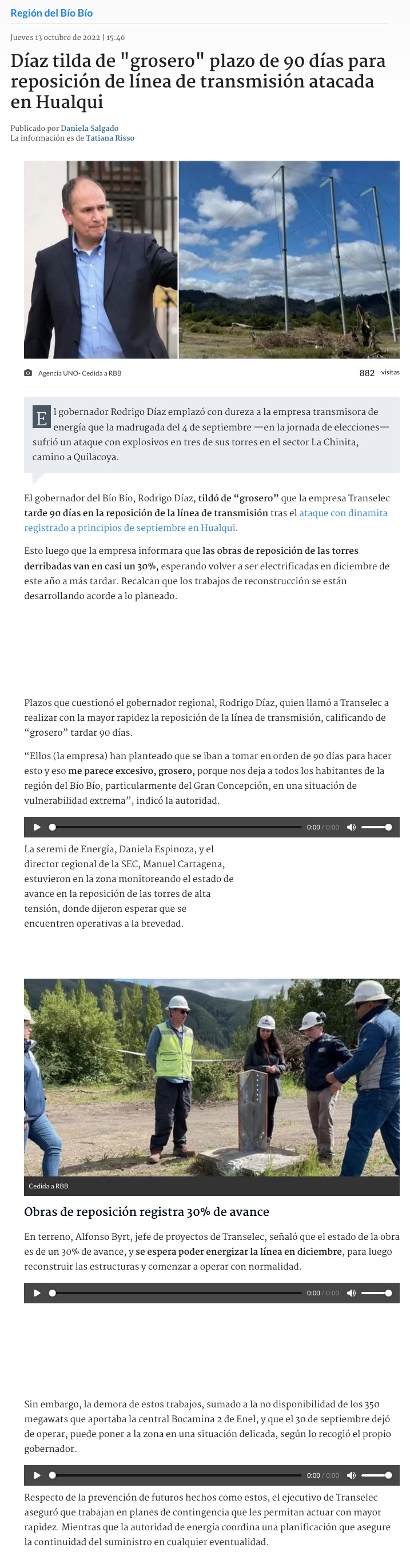 Monitorean estado de reposición de torres de alta tensión en Hualqui - (El Sur)